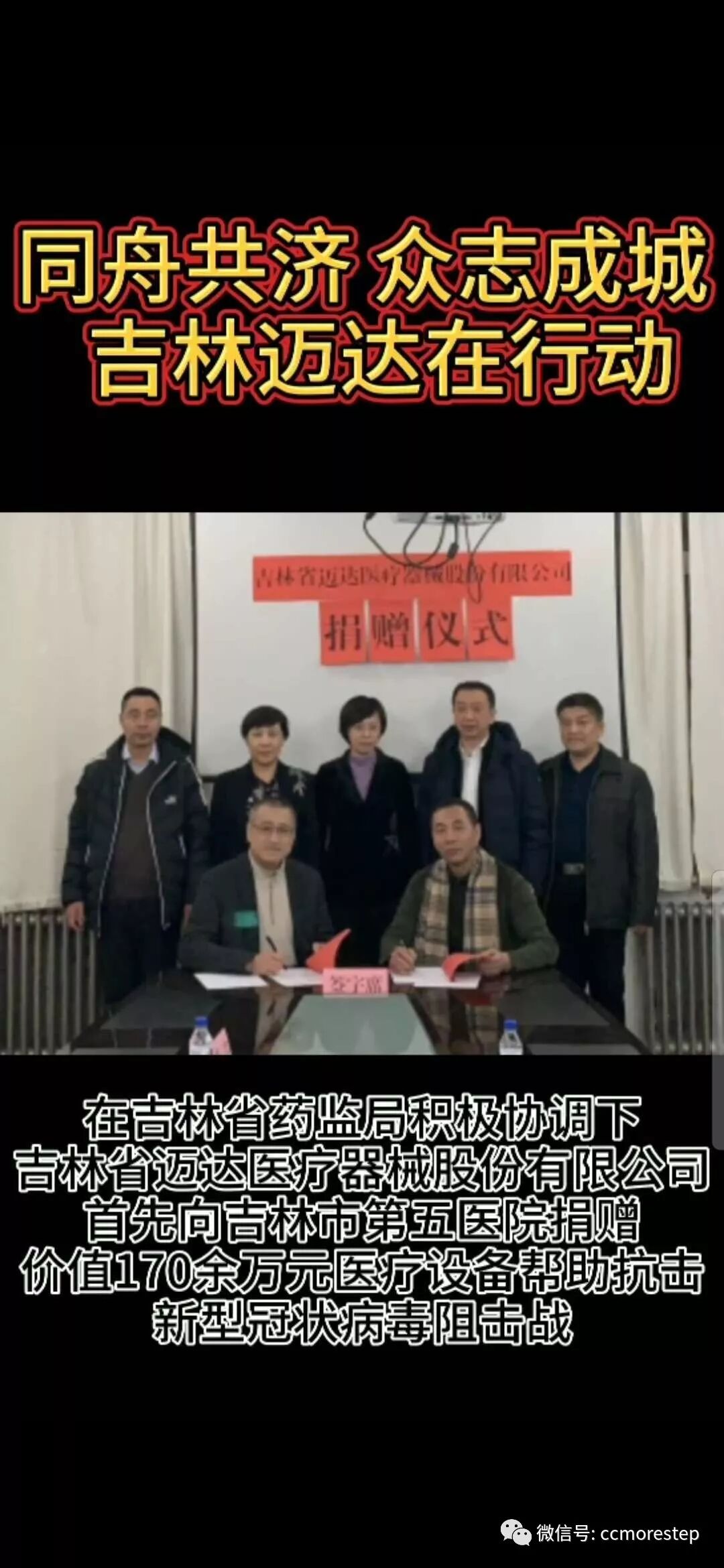 1月26日,疫情刚开始爆发的时候,在省、市政府和省药监局的积极协调下,公司带队从长春市赶赴吉林市,为吉林市定点捐赠一台价值170余万元的“射频热疗系统”医疗设备,帮助吉林市抗击此次新型冠状病毒感染的肺炎疫情。
